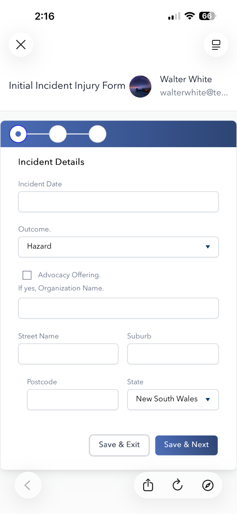 Let workers report incidents directly from their mobile device in real time, keeping documentation accurate and escalation timely wherever they are. The longer a worker waits to report an incident, the weaker the documentation becomes. Supportly lets workers lodge a structured incident report from their phone within minutes of something occurring. Required fields guide them through each step, the report reaches the manager dashboard immediately, and everything is timestamped against the participant's record ready for any Quality Commission review.